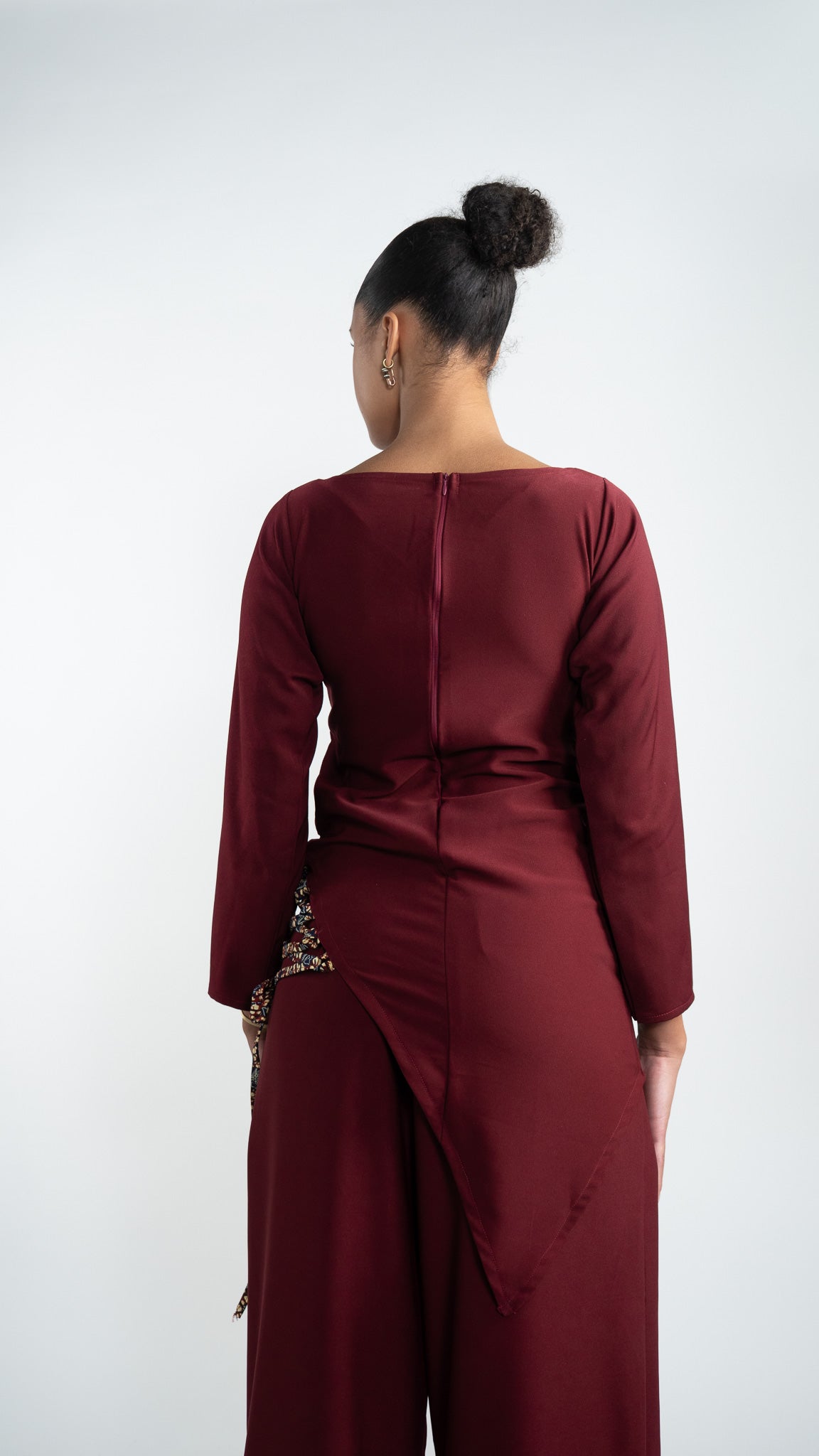 Liora met en valeur la silhouette avec sa coupe asymétrique et ses liens croisés au dos.